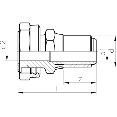 • Переходник электросварной ПЭ / латунь с накидной гайкой d32x1 ¼»