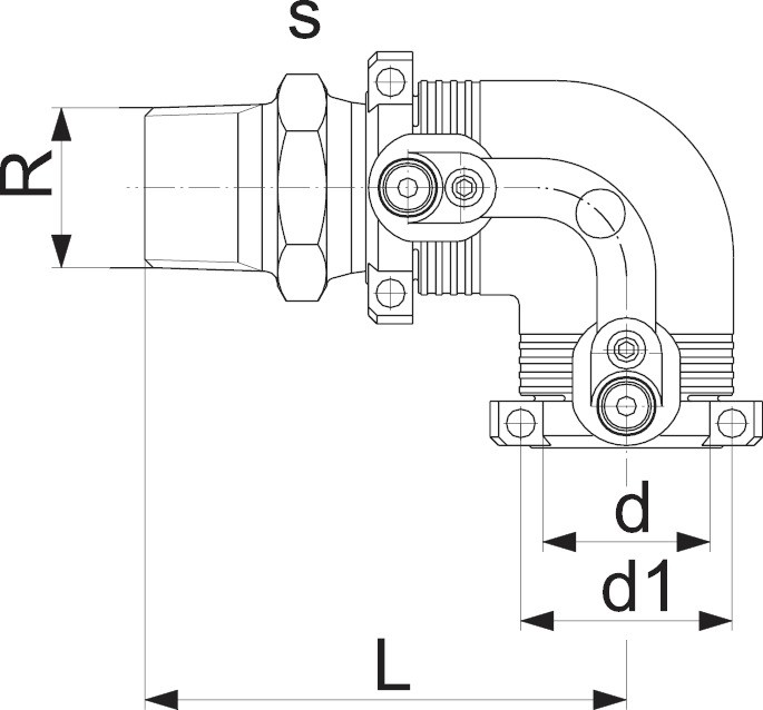 • Переход 90° электросварной ПЭ / латунь с нар. резьбой d50x1 ½»