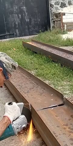 Резка балки болгаркой